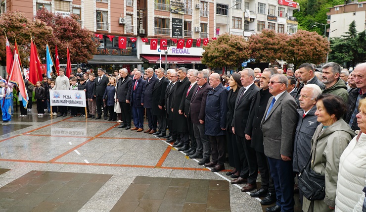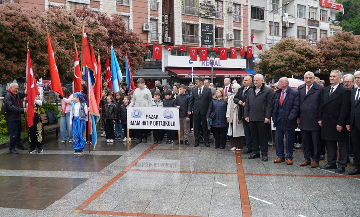 Çelenk sunma Programına, Pazar Belediye Başkanı Neşet Çakır, protokol, siyasi parti temsilcileri, STK başkanları, okul müdürleri ve öğrenciler ile vatandaşlar katıldı.