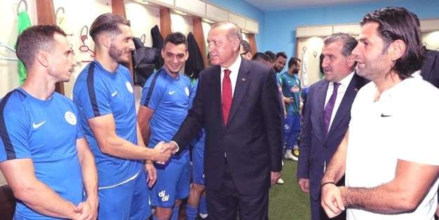 Başkan Erdoğan iki takımın soyunma odalarını ziyaret ederek futbolculara ve teknik heyetlere başarılar diledi.