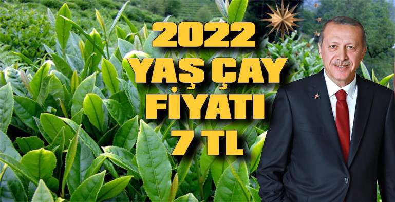 Cumhurbaşkanı Recep Tayyip Erdoğan, ÇAYKUR’un 2022 yılı destekleme ücreti ile birlikte yaş çay taban kilo fiyatını 7 lira olarak açıkladı.