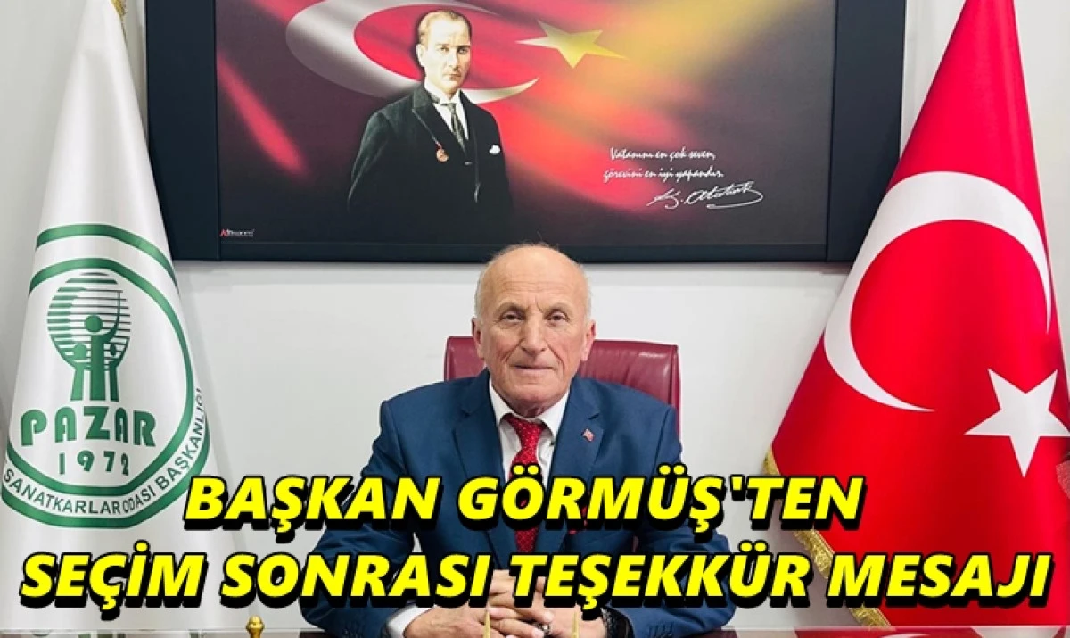 Rize’nin Pazar İlçesi Esnaf ve Sanatkârlar Odası Başkanı İmdat Görmüş, Olağan Genel Kurulunda kendisine başkanlık görevi verilmesinin ardından bir teşekkür mesajı yayımladı.