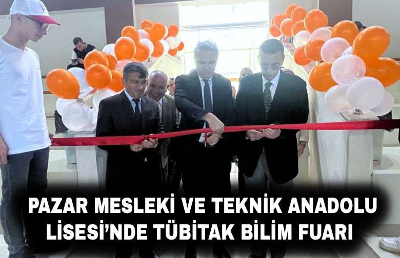 Pazar Mesleki ve Teknik Anadolu Lisesi Spor Salonu’nda düzenlenen TÜBİTAK Bilim Fuarı açılışına, Kaymakam Mustafa Akın, Belediye Başkan Vekili Ahmet Şen, İlçe Milli Eğitim Müdürü Nimet Büyük, öğretmenler ve öğrenciler katıldı.