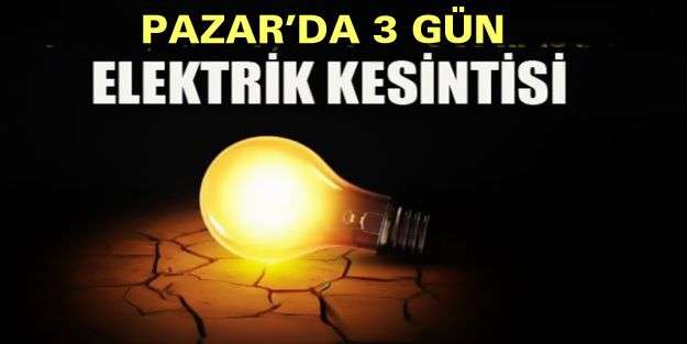 Pazar’da 15 KV gerilimin 31,5 KV’ye dönüşüm çalışmaları nedeniyle 3 gün üst üste elektrik kesintisi uygulanacak.