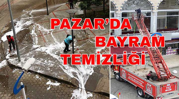 Pazarı Belediyesi'ne bağlı ekipler, Ramazan Bayramı öncesinde ilçede bazı yerler sabunlu suyla yıkanırken, belediye destekli Cami Derneği de ilçe merkezdeki camilerde temizlik çalışması gerçekleştirdi.