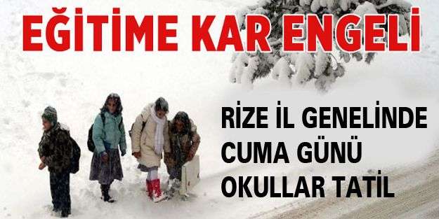 Rize'de etkil kar yağışı nedeniyle il genelinde ilk ve orta dereceli okullarda eğitime yarın da (Cuma günü) ara verilecek.