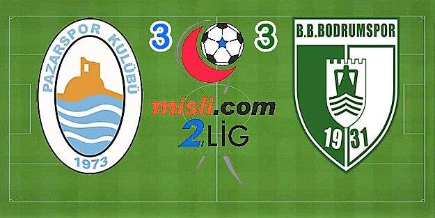 2. Lig Kırmızı Grup takımlarından Pazarspor, sezonun 27. haftasında evinde ağırladığı Bodrumspor ile 3-3 berabere kaldı.