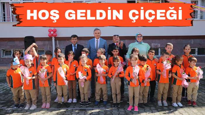 Okulun 4. sınıfından 6 öğrenci anasınıfı ve 1. sınıfa başlayacak 6 öğrenciye “Hoş Geldin Çiçeği” takdim etti.