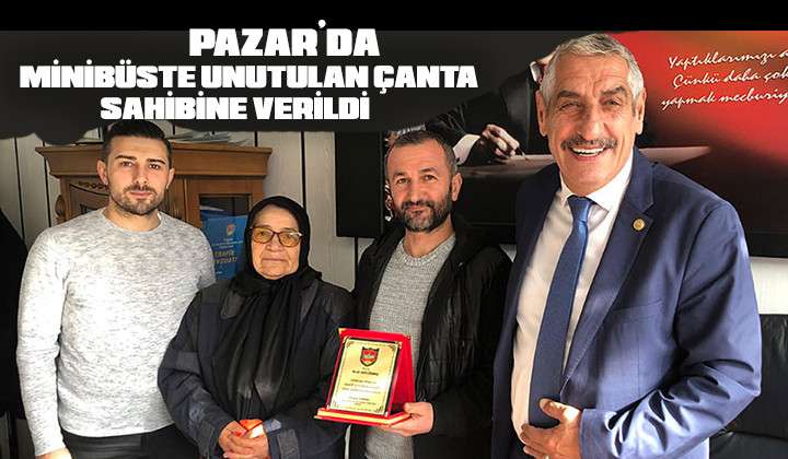 Pazar'da yolcu minibüsünde unutulan içi para ve ilaç dolu çanta, sürücü tarafından Şoförler Odası'na teslim edilirken, çantanın sahibi de tespit edilerek kendisine teslim edildi.