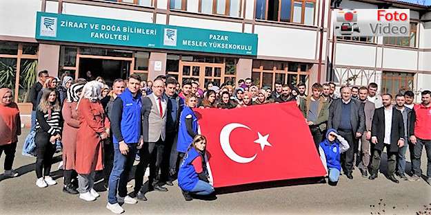 Recep Tayyip Erdoğan Üniversitesi Pazar Meslek Yüksekokulu ile Ziraat ve Doğa Bilimleri Fakültesi öğrencileri tarafından düzenlenen aziz şehitlerimizi anma programı Kur’an-ı Kerim tilaveti ile başladı. Ardından Şanlı Türk Bayrağı açılarak saygı duruşunda bulunuldu ve İstiklal Marşı okunarak, hain saldırıda Şehit olan Mehmetçiklerimiz için dualar edildi.