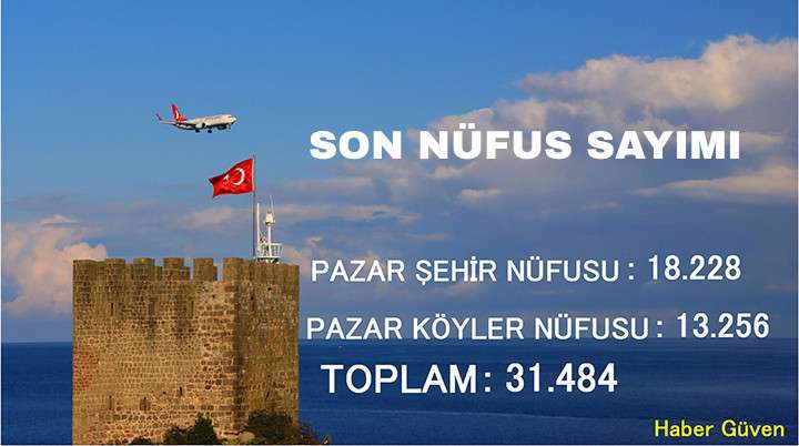 Bu son verilere göre Pazar Şehir Nüfusu 18.228 olurken Köy Nüfusu ise 13.256 kişi oldu. Adrese dayalı nüfus kayıt sistemine göre Pazar İlçesinde toplamda ise 31.484 kişinin olduğu belirlendi.