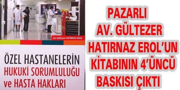 Pazarlı İstanbul Barosu Sağlık Hukuku Merkezi Başkan Yardımcısı Av. Gültezer Hatırnaz Erol’un hazırladığı ve seçkin yayınları arasında çıkan ‘Özel Hastanelerin Hukuki Sorumluluğu ve Hasta Hakları’ adlı kitabının 4’üncü baskısı çıktı.