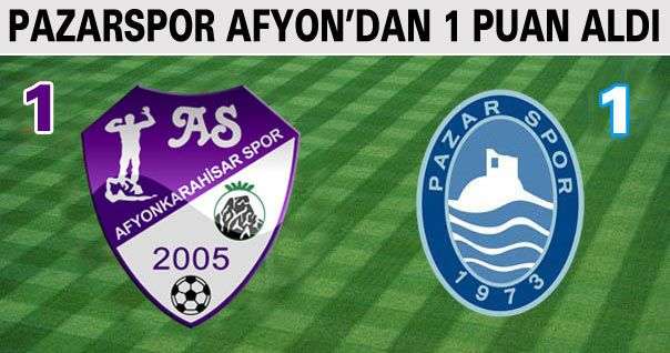 Spor Toto 3. Lig 3. Grupta Deplasmanda Afyonkarahisar'a konuk olan Pazarspor, 1-0 geri düştüğü maçta, son dakikalarda bulduğu golle 1-1 berabere kaldı.