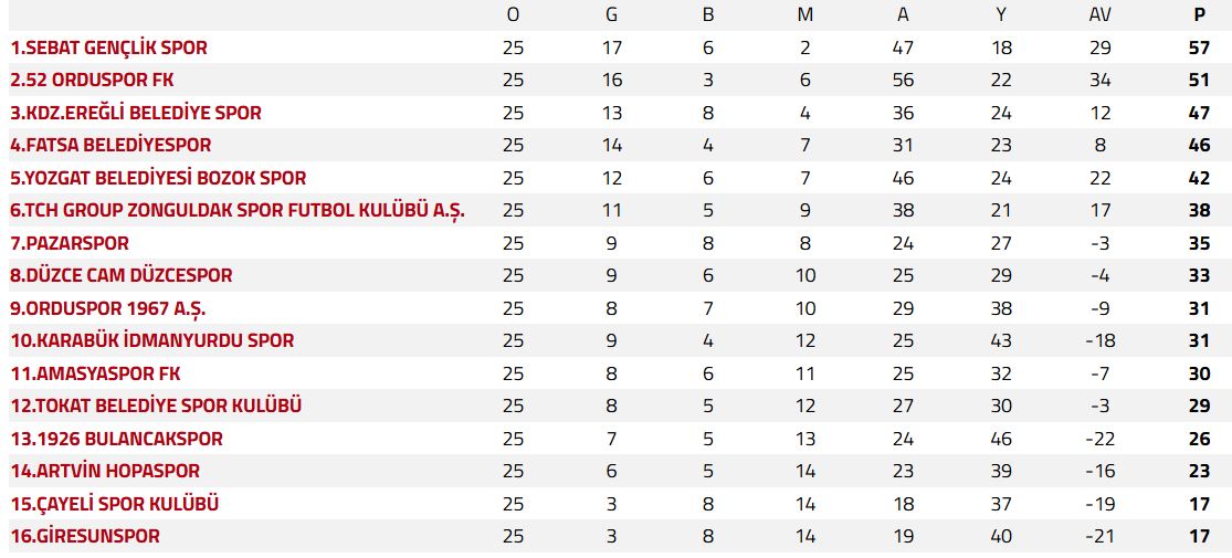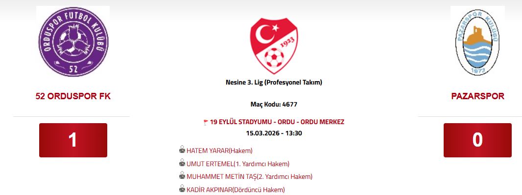 Nesine 3. Lig 3. Grup 25. hafta maçında Pazarspor deplasmanda 52 Orduspor'a 1-0 mağlup oldu.