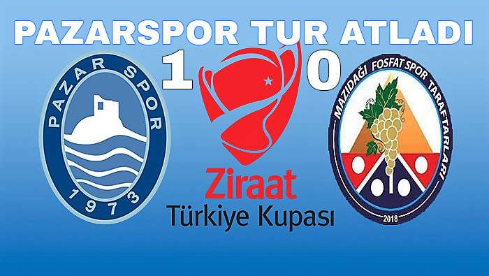 Ziraat Türkiye Kupası’nda 2. Tur eleme müsabakasında Pazarspor, evinde ağırladığı Mazıdağı Fosfat Spor’u 1-0 mağlup ederek üçüncü tura yükseldi.