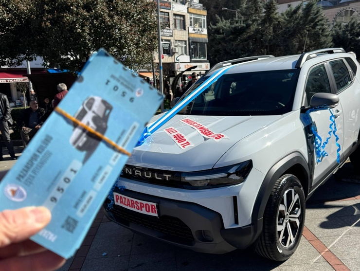 Pazarspor yararına düzenlenen çekiliş kapsamında hediye edilecek olan araç, ilçe meydanında sergilenmeye başladı.