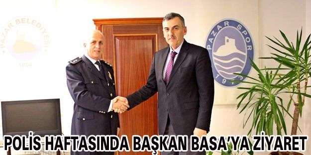 Polis teşkilatının 170. Kuruluş yıl dönümü sebebi ile 07-10 Nisan tarihleri arasında yapılacak etkinlikler kapsamında bugün İlçe Emniyet Müdürü Güngör Kaptan ve beraberindeki polis memurları Başkan Basa’yı makamında ziyaret etti. Ziyaret esnasında Pazar Belediye Meclis üyesi Fahrettin Yaşar Hoşver'de hazır bulundu.