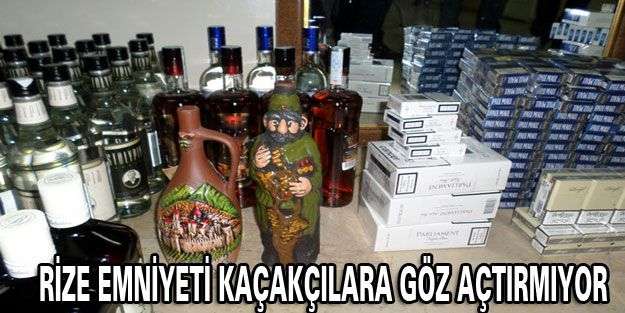 Rize İl Emniyet Müdürlüğü Derepazarı İlçe Emniyet Amirliği ekiplerince "Kaçakçılık ve Sahte İçki Satışına" yönelik olarak yürütülen çalışmalarda; 185 şişe değişik markalarda bandrolsüz kaçak içki, 439 paket değişik markalarda kaçak sigara, 30 lt plastik bidonlarda 2 adet kaçak mazot ve mazot kaçakçılığında kullanılan seyyar pompa ele geçirildi.