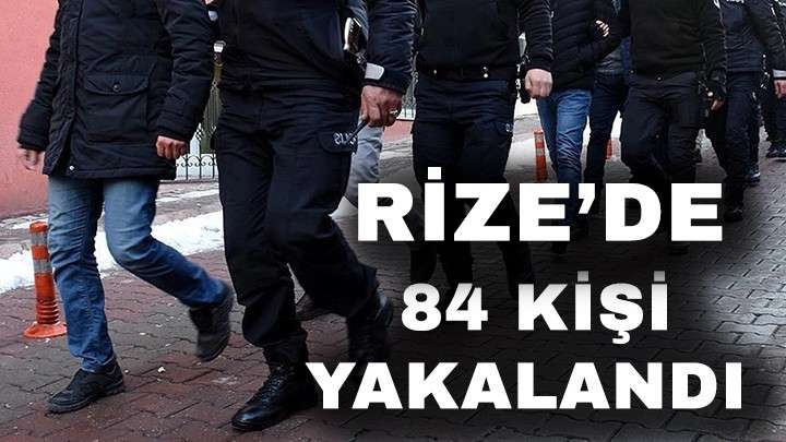 Rize İl Emniyet Müdürlüğüne bağlı ekiplerce 01.12.2023 - 27.12.2023 tarihleri arasında aranan şahısların yakalanmasına yönelik yapılan çalışmalar kapsamında 84 şahıs yakalanarak haklarında gerekli adli işlemler yapılmıştır.