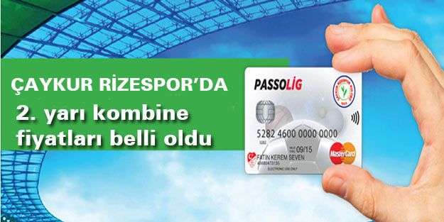 Açıklamada, 2015-2016 futbol sezonu ikinci yarısı için kombine kart satışlarının 8 Ocak'ta başlayacağı ifade edilerek, şunlar kaydedildi: "Taraftarlarımız, kombine kartlarını peşin veya kredi kartına 6 taksitle ödeme şansı bulacaklardır. Kombine kartı protokol tribün bin 650 lira, A-B tribün 450 lira, maraton sivil 150 lira, maraton erkek öğrenci için 60 lira, kız öğrenci için 30 lira, kale arkaları 50 lira, bayan ve çocuk tribünü ise 30 lira olarak belirlendi. Kombineler takımımızın Rize Yeni Şehir Stadyumu'nda oynayacağı tüm Süper Lig, Türkiye Kupası ve hazırlık müsabakalarını kapsamaktadır."