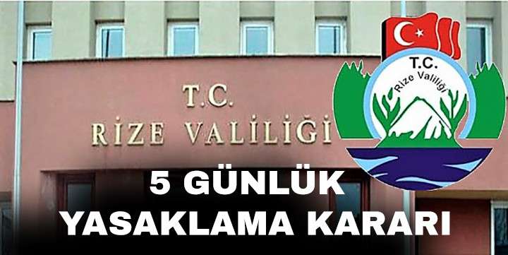 Rize Valiliği yaptığı duyuruda ilde 5 günlük süreyle toplantı ve gösteri yürüyüşlerinin yasaklandığı belirtildi.
